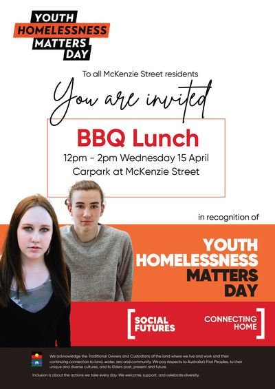 A BBQ for young people staying in supported temporary accommodation with Social Futures staff. All temporary accommodation clients invited to attend.